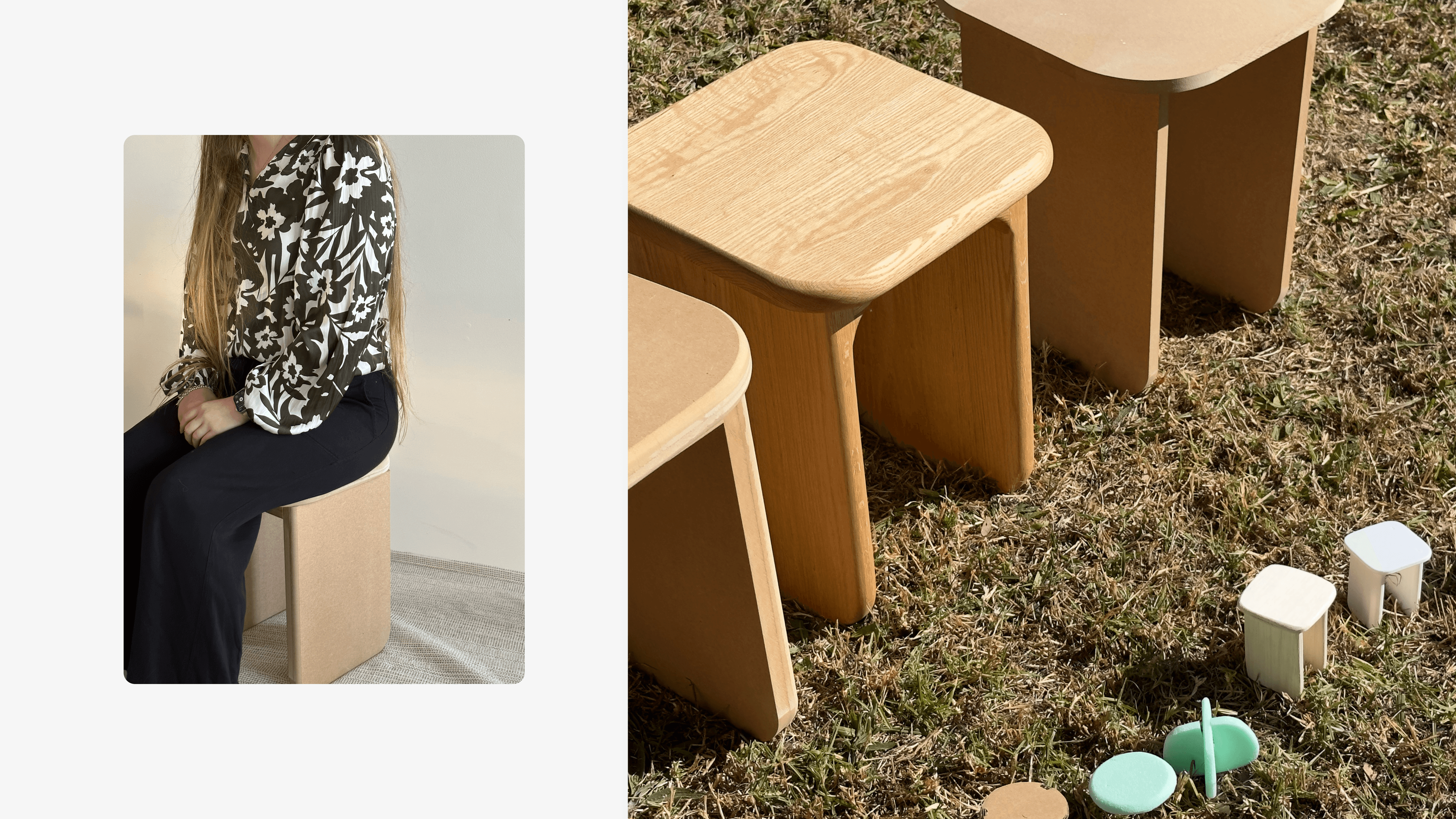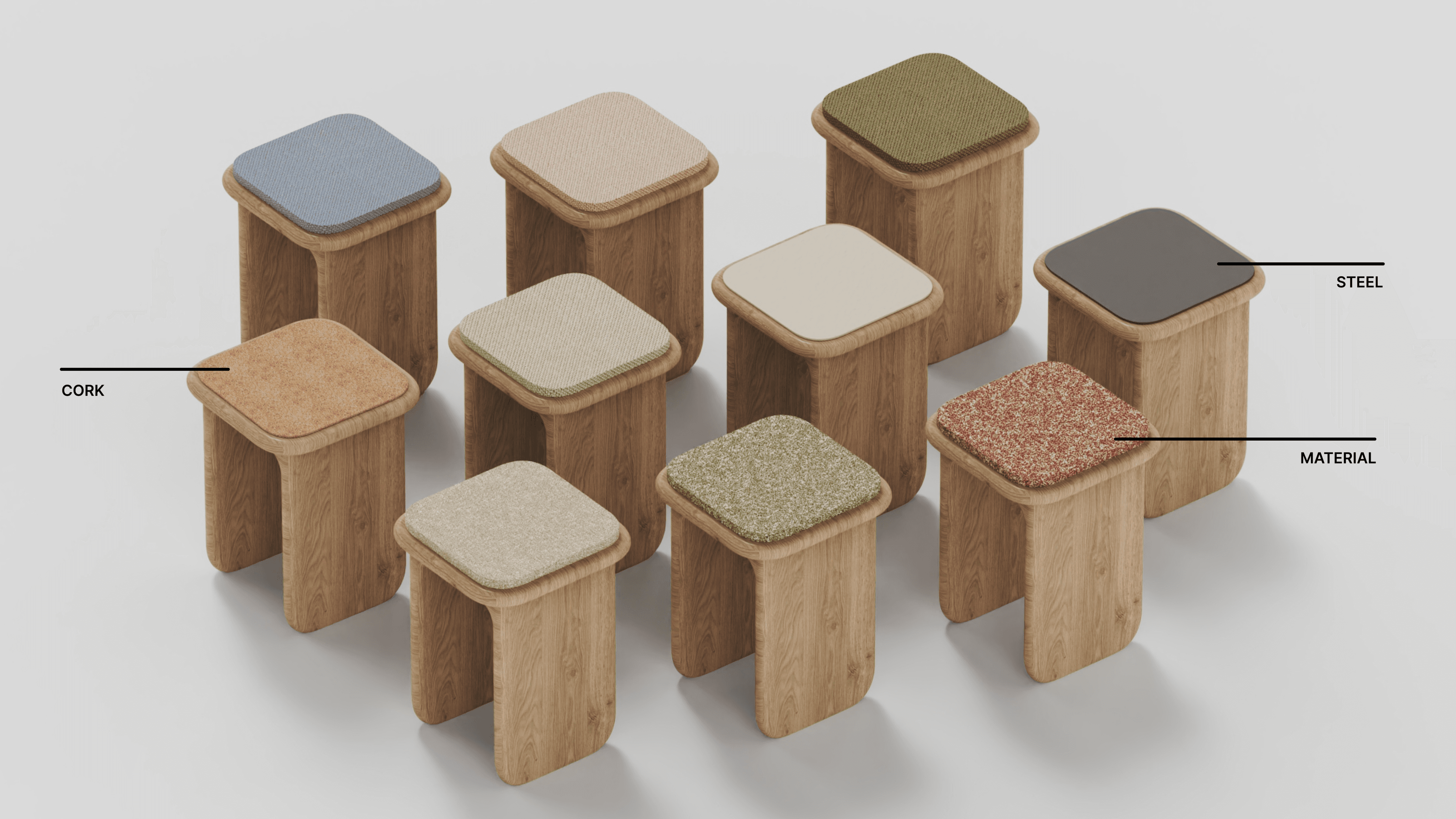 'Place' combines solid craftsmanship with emotional durability. Its soft geometry and natural materials evoke familiarity, while modular cushion tops invite personalisation over time. Designed to adapt with its owner and integrate effortlessly into any space, the stool stands as both a functional object and a long-term companion in the home.