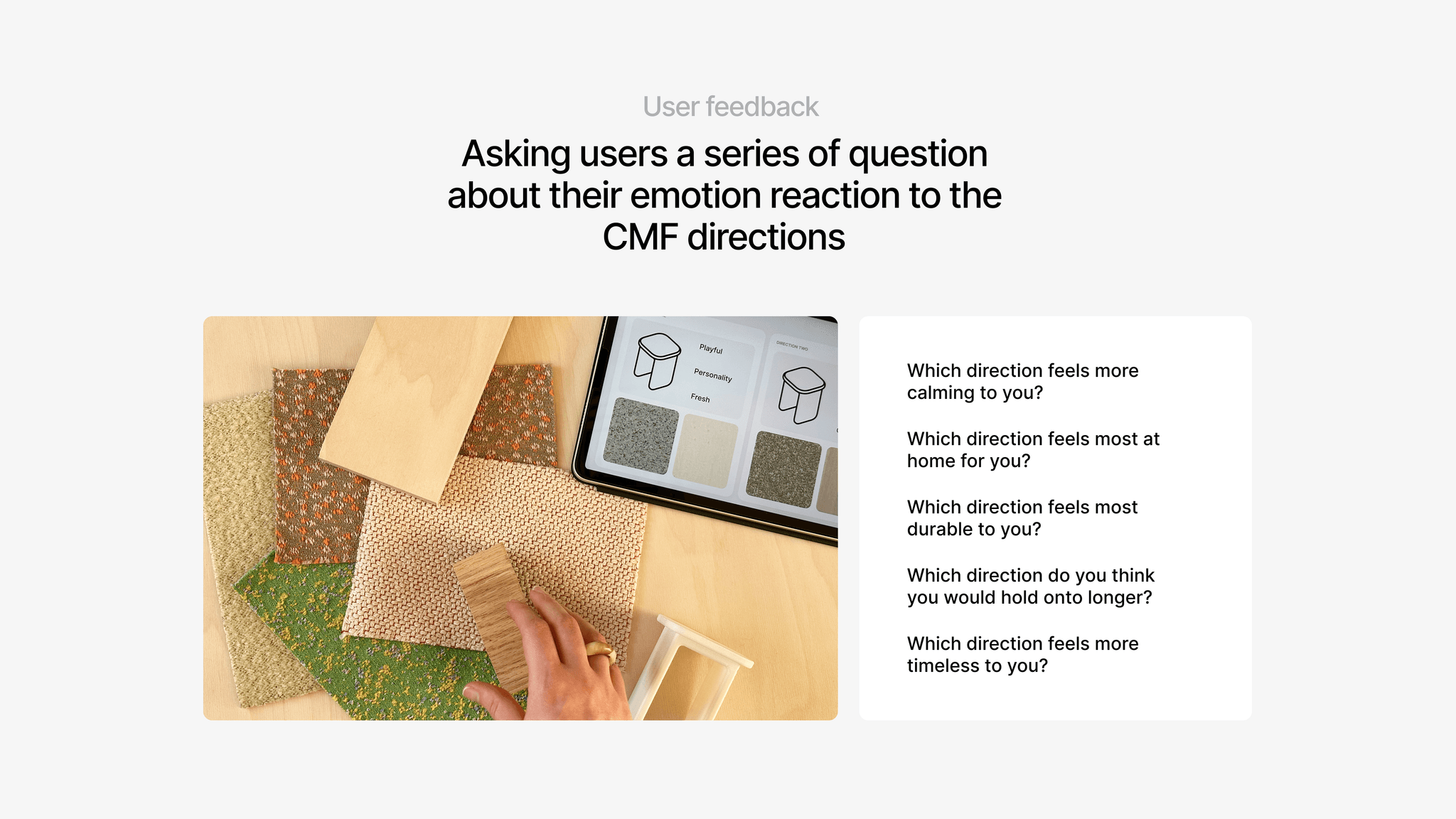 Shaping the final direction through feedback and material testing.